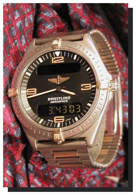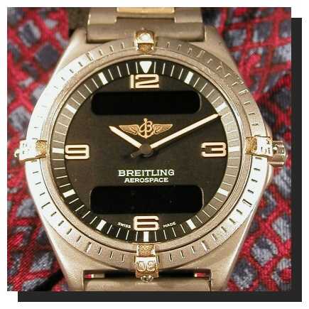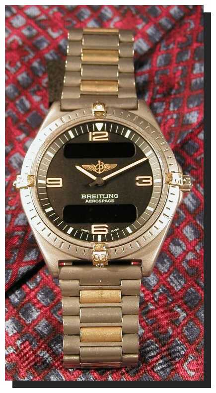 Nummer 13 ist wieder einmal eine Quarz-Uhr, Die BEITLING Aerospace von 1995 in Titan-Gold