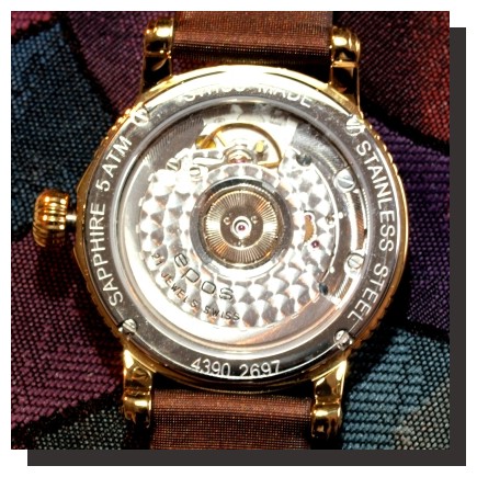 Die EPOS Emotion Automatic war ihre Wahl. Sie ist mit einem IP-vergoldetem Edelstahl-Gehäuse mit Saphirglas ausgestattet.