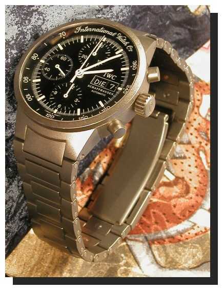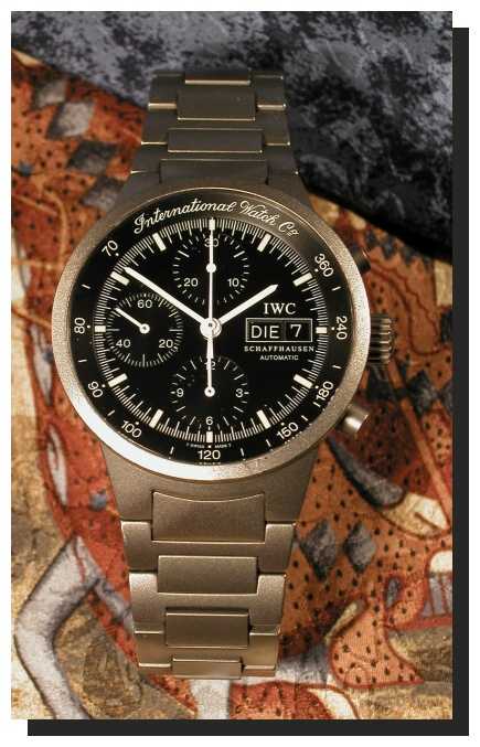 Das Werk ist ein modifiziertes Valjoux 7750 und nennt sich IWC-Kaliber 7922. Das Besondere ist das Armband.