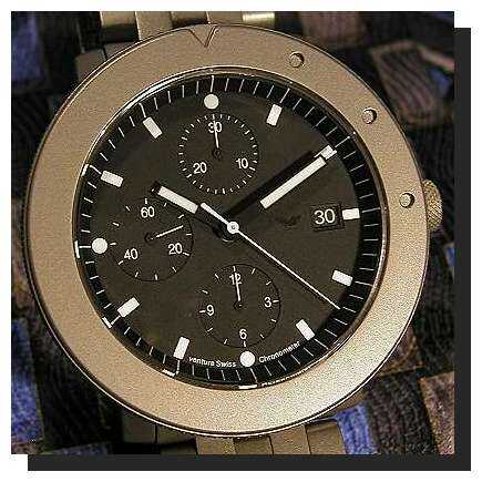 Es ist eine VENTURA v-matic SUB. Ihr Gehäuse und ihr Band sind aus gehärtetem Titan,